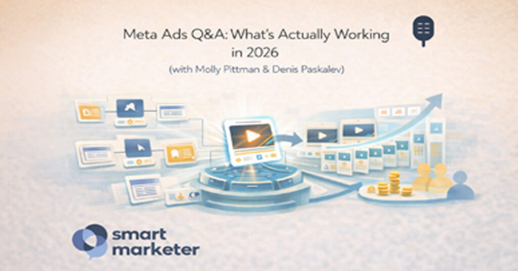 In this episode of the Smart Marketer Podcast, Molly Pittman is joined by Smart Marketer’s Director of Advertising, Denis Paskalev, for a live Meta Ads Q&A where they answer real questions from marketers about what is actually working with Meta ads in 2026. From campaign structure and creative testing to