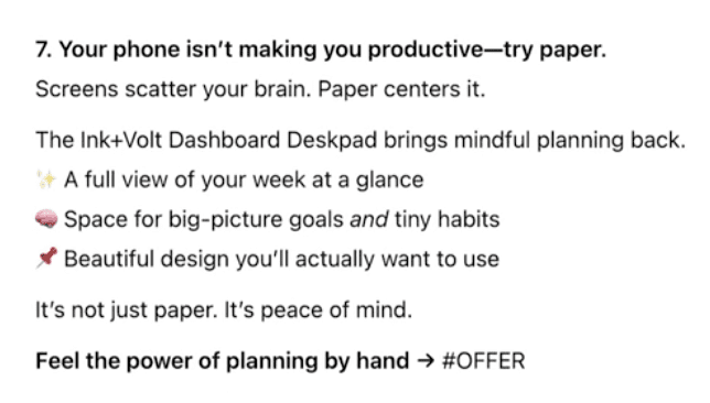 - The same hook, but new intros (“Tired of feeling scattered?”)