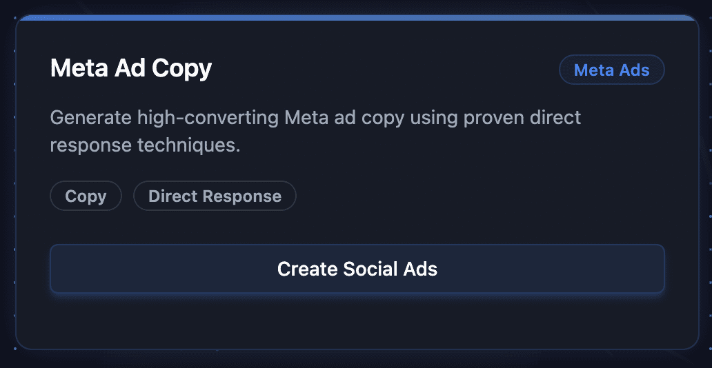 Then I went back into the Smart Marketer AI tool and used the Meta Ads Copy Generator Prompt.